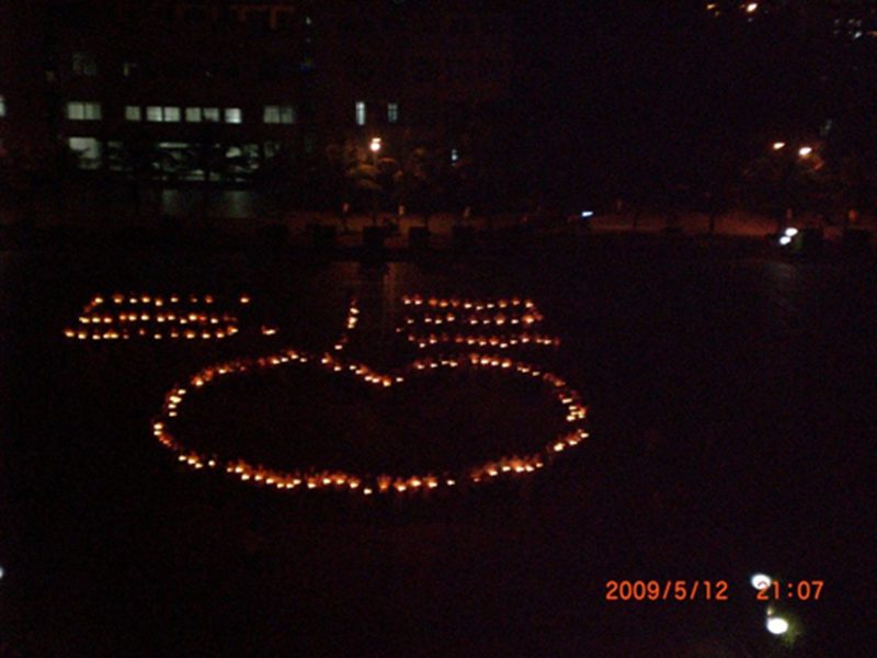 2009年5月12日,由旅游学院08级市场营销系举办的“大爱无疆 ,汶心无溃”——5.12汶川地震周年祭活动拉开帷幕。