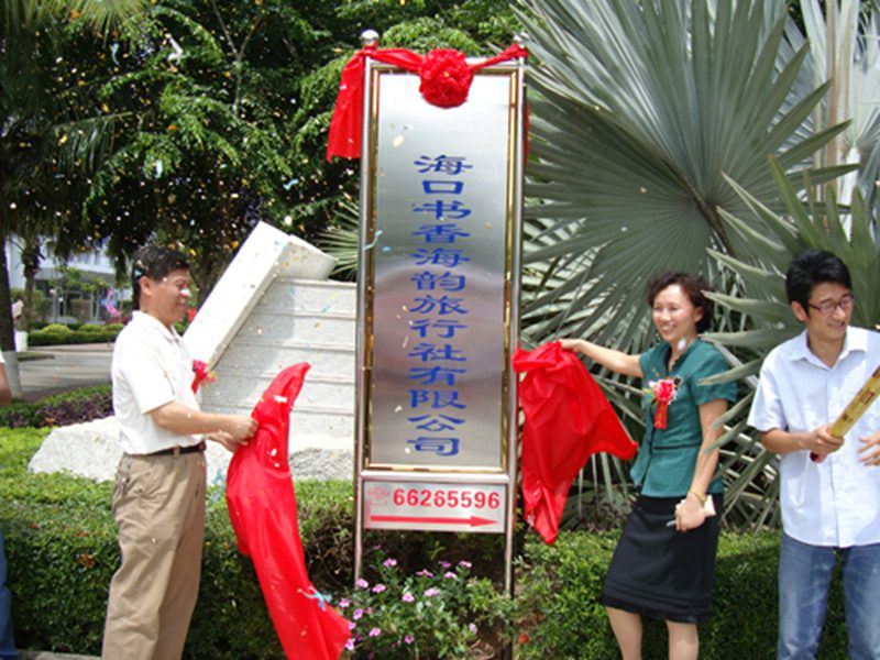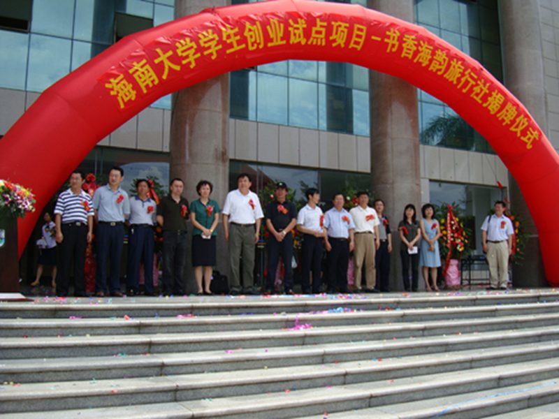 为了响应和贯彻《2009年海南共青团促进青年就业创业行动实施方案》文件精神,重树海南旅游服务新形象,为海南国际旅游岛的建设贡献力量,我院积极参与、大胆创新,并于2009年5月15日上午10:30在william威廉英国官网旅游学院四号教学楼前广场隆重举行了海南省大学生创业试点项目——海口书香海韵旅行社有限公司挂牌仪式。