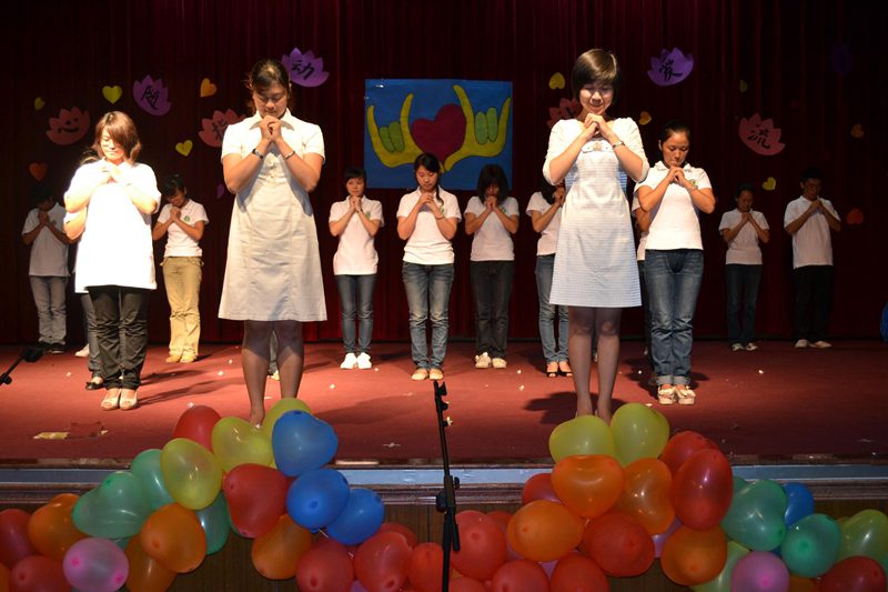 辅导员、心理健康协会成员、心理委员表演《感恩的心》