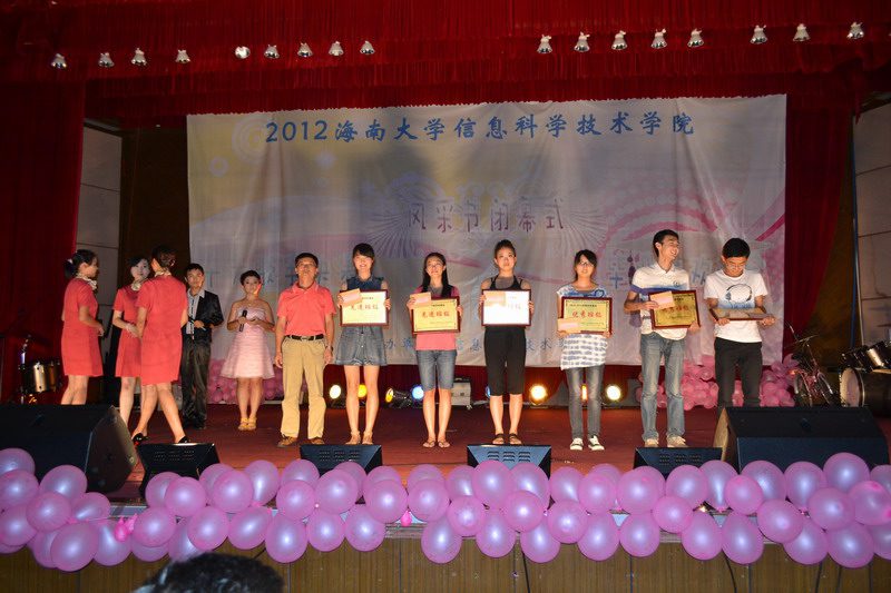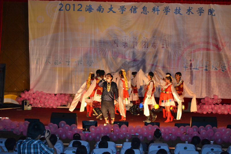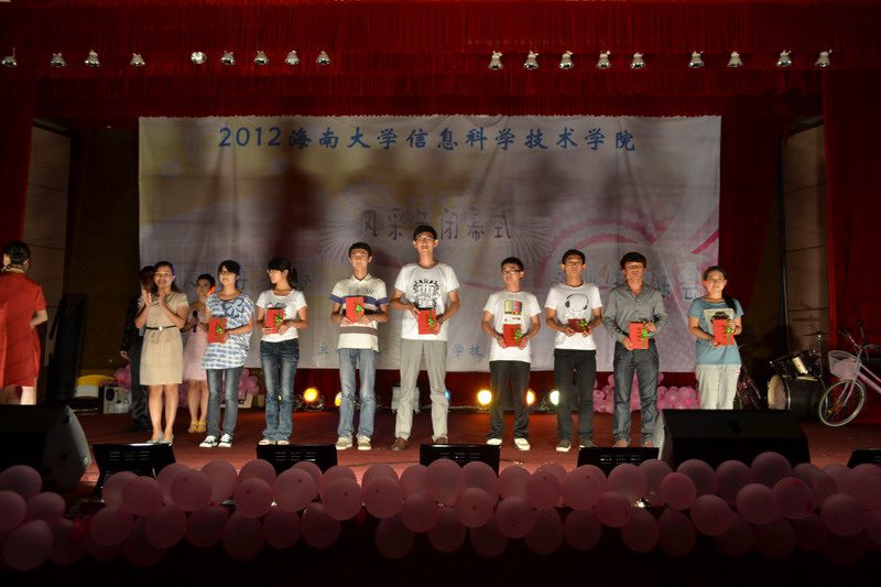 6月2日晚,信息科学技术学院第六届“树华夏礼仪新风,铸海大明日辉煌”风采节闭幕式暨十大歌手决赛在田家炳报告厅隆重举行,本场晚会同时也是献给我院2012届毕业生的欢送晚会。院党委陈明宝书记、蒙秋妍副书记、计算机中心主任邢琳教授及学工办全体老师出席。 由Incomplete乐队带来的开场秀《21guns》和《单车》震撼开场,整场晚会以音乐为主打,舞蹈穿插其中,同时幽默、搞笑不断,台下的观众和啦啦队不时爆发阵阵掌声,晚会在时尚、欢乐的气氛中进行。 期间,陈明宝书记为2011年度信息科学技术学院学风建设“先进班级”颁奖;蒙秋妍副书记为2011年度信息科学技术学院“优秀学生干部”代表颁奖;邢琳教授为2011年度信息科学技术学院“学习标兵”代表颁奖;欧少红老师、陈鹏老师为第六届风采节活动期间的获奖集体和个人颁奖。 “我们一同用心捧起晶亮的雨滴、我们一起用手挽住飘逸的长风,我们在春天的原野默默祝愿生命与永恒。那洁白的云朵是我们真挚的过去、那湖水的丰盈是我们蓄满的深情,那空气里激荡着的是我们露珠般闪烁的笑声。”晚会在由我院2009级学生次拉姆、斯郎曲西及其他学院藏族学生带来的藏族歌舞《青春踢踏》中结束。雪域高原优美、欢快的旋律在不断回响,祝愿在校的同学学习进步、毕业的同学工作顺利,共同用青春的踢踏去诠释生命的精彩与感动。扎西德勒!