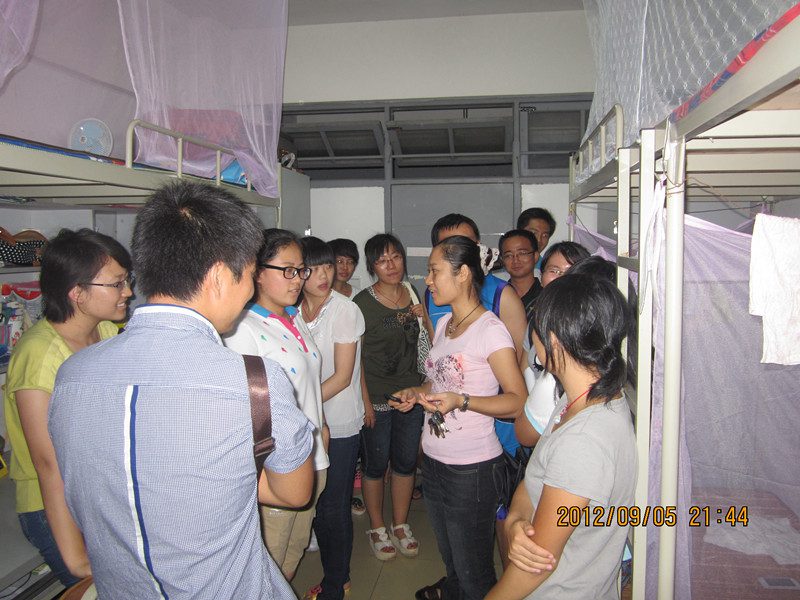 大家先后走访了14号学生宿舍楼和13号学生宿舍楼,在逐一走访每一间宿舍的同时,我系师生都给2012级新生们带去了学院的问候与祝福。在与新生进行简短交谈的过程中,邢老师和赵老师还细心地询问了新生的到校状态及实际需求,并不忘叮嘱要大家牢记和关注各种通知及注意事项,今后还要进一步加强构建独具专业特色的宿舍文化,注重切实维护和全力保障宿舍安全,学会掌握择友、交友的相关技巧等各项内容。此外,老师们还即时地向大家告知了日后的诸项新生入学教育安排及内容。而现场行管系的各位学生干部、党员也逐一、耐心地回答了我系新生心中存在的部分疑问,力求尽己所能,主动为新生排忧解难,帮助大家能够尽快地适应新校园、新生活,从而逐渐步入大学正常的学习生活轨道。