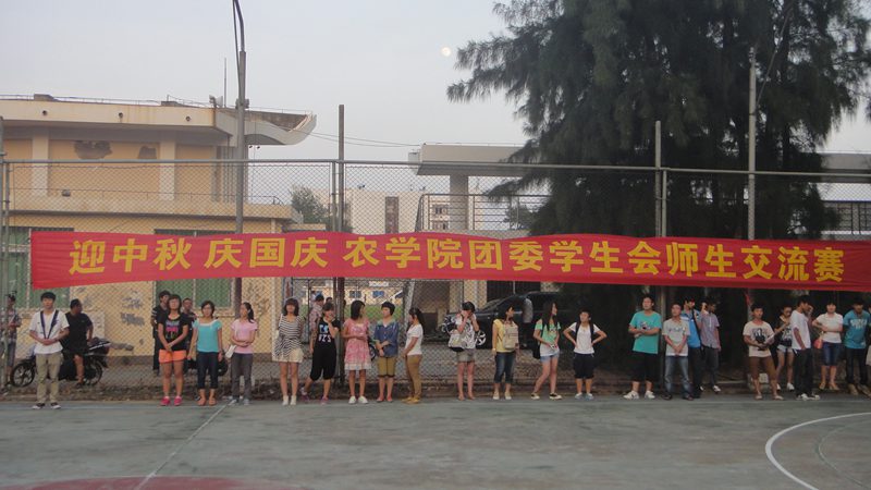 为加强大学校园体育文化建设,营造良好的校园文化氛围以及全面推进素质教育,农学院团学在学工办老师的支持与协助下举办了2012年“迎中秋,庆国庆,师生篮球赛”。