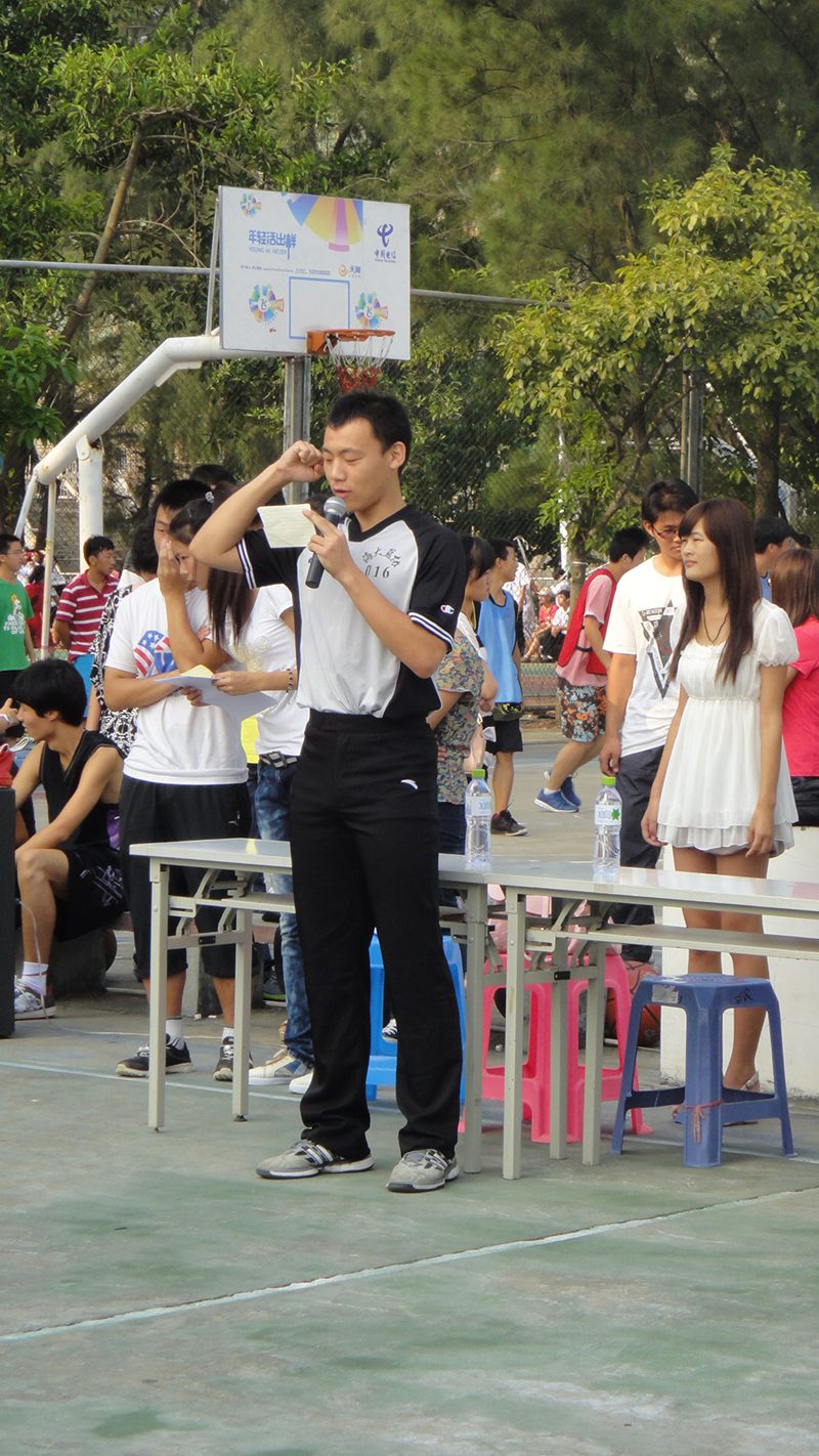 比赛第一项,由球员代表黄世章同学和裁判代表毕宇生同学宣誓。他们分别表示。会严格遵守赛事活动的各项安排和比赛规则要赛出水平,赛出风格,做到友谊第一,比赛第二;而裁判员将会全心全意做好裁判工作,保证做到严肃、认真、公正、准确。然后,农学院团学负责人周霞老师进行发言。周老师感谢对本次活动提供赞助的恒丰强公司、参与筹备此次活动的所有工作人员以及参加比赛的全体球员。接下来,农学院首届恒丰强杯篮球赛正式开赛!