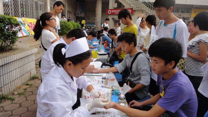 同学们踊跃献血