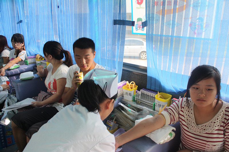 其中,有一个因为年龄未满十八岁而无法参加献血的同学,特别感慨道:“哎,今天真可惜,我没法在十八大召开的这个特殊时刻,通过义务献血表示一点爱心了,要是我早出生一个月就好了。不过没关系,以后我还有的是机会参加献血,也就有机会表示自己的爱心了。”此情此景,令周围的同学们都对他致以善意的微笑和敬佩的眼神。面对部分因为身体原因而无法参加献血的同学,护士们也致以劝慰的话语和感动的微笑。