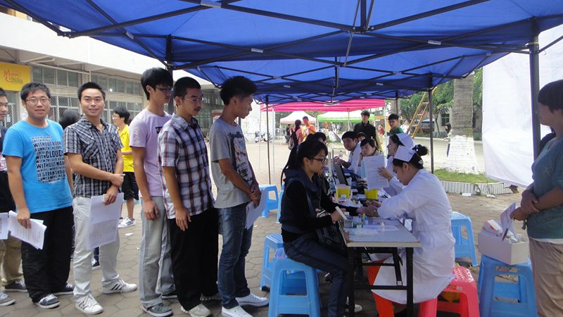 接下来,学院的老师和同学们自觉有序的配合医护人员做好登记、血压测量、血型化验等工作,并排队登上献血车,现场秩序井然。从他们的表情中,我们看到了自豪与快乐,他们用热血表达了自己的拳拳爱心,也用实际行动展示了当代大学生博爱奉献、胸怀他人、回报社会的责任感和使命感。