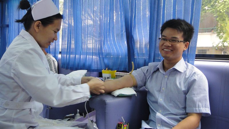 随后,农学院学生第三党支部刘洋同志在现场随机采访了献血者。其中包括学工办刘勇勤老师。他告诉我们,这是他第一次参与无偿献血,但并不紧张和担心,只要严格按照规范程序进行献血不仅对身体无害,同时也是一种回馈社会的行为。接下来,2012级作物栽培与耕作学博士何美丹同学接受了我们的采访,我们了解到,何美丹同学系B型RH阴性血,此类血型为稀有血型,民间俗称“熊猫血”,临床用血资源十分宝贵,她从2005年9月至2012年5月期间献血11次,献血总量达4150ml。她表示,作为当代青年,愿意尽自己的微薄之力为社会做出了自己的贡献,她为此感到愉悦和满足。刘勇勤老师和何美丹同学让我们深深感受到了他们高尚的品格和高度的责任意识,他们的奉献精神值得我们每一个人学习。
