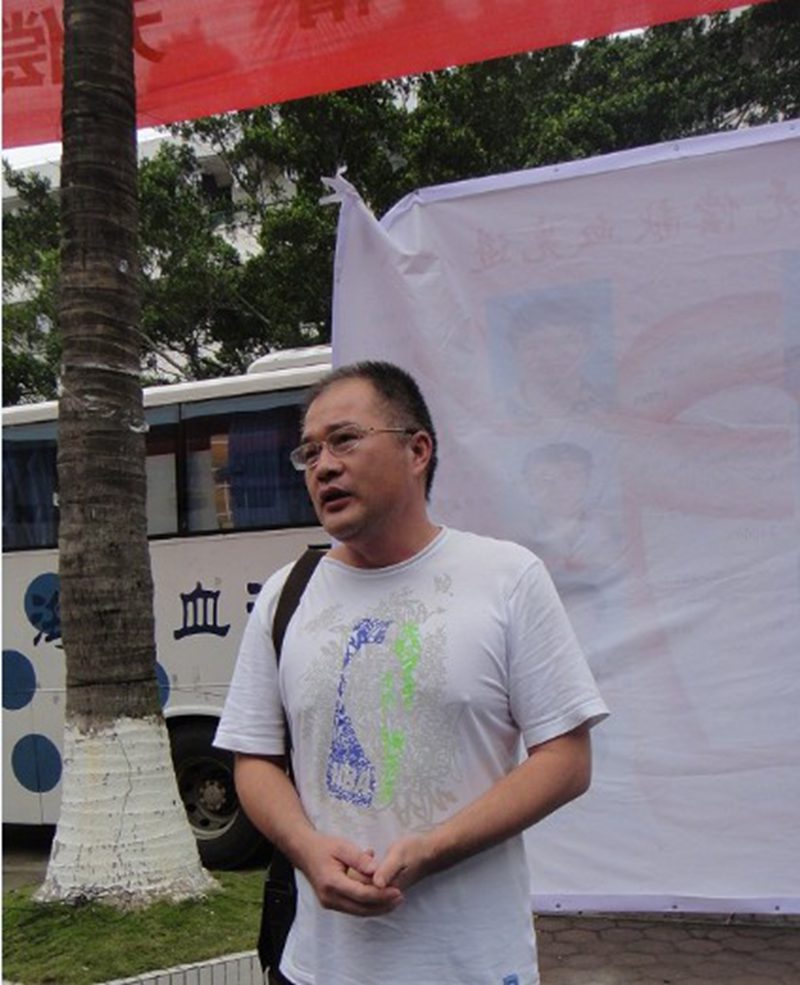 刘勇勤老师微笑着献血