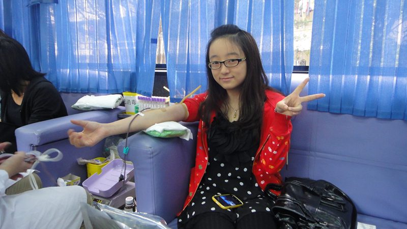 女同学献血展露笑颜