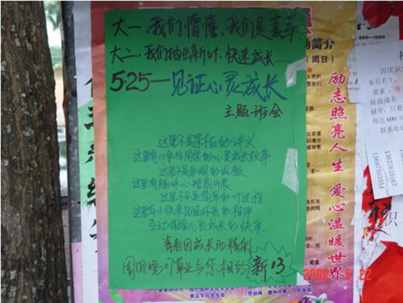 2009年5月21日晚八点,农学院07草业科学班级在新13课室召开了 “见证心灵成长”心理健康教育主题班会,07草业所有同学和班主任郇老师以及部分其他班级同学参加了这次主题班会。