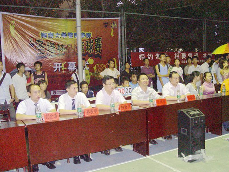 为了积极响应校团委提倡甲流防控期间户外运动的号召,经过紧张的筹备与安排,管理学院“圣塔杯”篮球赛于10月11日晚在灯光球场隆重开幕。开幕式上,院党委副书记段捷频、辅导员熊玉阁,赞助商麦点餐饮有限责任公司相关负责人出席了开幕庆典。校学生会和各兄弟学院体育部门负责人参加了开幕式。