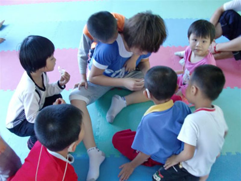 在与残联中心老师们的交谈中,志愿者进一步了解到小朋友的家庭和学习情况。在老师们的带领下,大家和小朋友们一起玩耍,一起学习。志愿者们教小朋友们拼图、识字,小朋友们则展示了他们的手工作品。活动的高潮出现在志愿者为小朋友们分发礼物的时候,水果、糖果、文具,轻轻的礼物承载着浓浓的温情,原本略显拘谨的孩子们霎时间回复到自然天真的状态,争着、抢着、要着,吵闹声、欢笑声,此起彼伏。活动中,为了更好地与小朋友们交流,志愿者用各种各样的方式传递者友爱和希望,当志愿者与聋哑儿童抱在一起时,大家都感动得落泪了,一次次牵手,一个个拥抱,都让大家感受到了那份浓浓的真情。聋哑儿童虽然失去了听说的能力,但是他们还有一颗颗充满爱和希望的红心。
