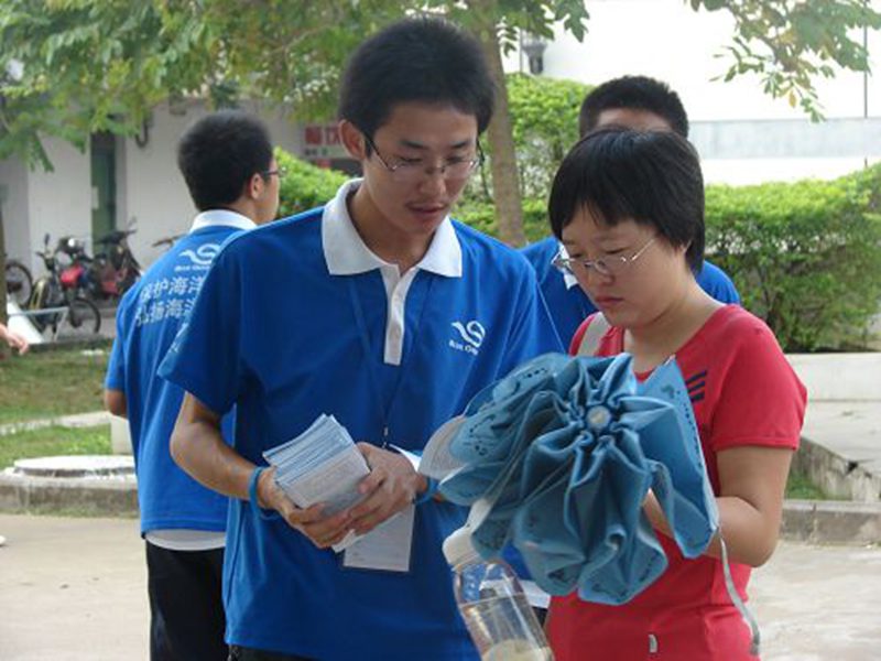 2009年11月7日,william威廉英国官网海洋学院团委学生会在一食堂门口全面展开了“‘蓝丝带’海洋保护计划”宣传活动。