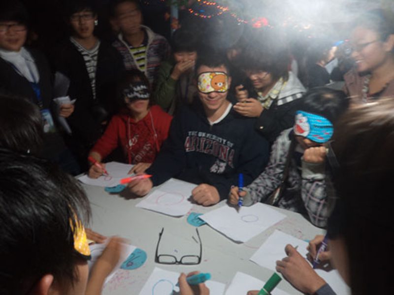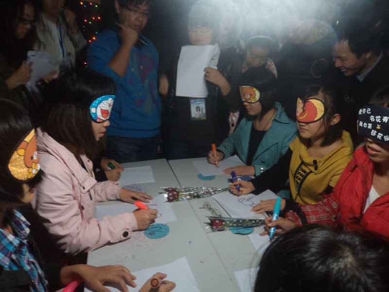 经过两个多小时精心准备工作,活动于晚上7点正式开始。我院主要组织了蒙眼作画、猜花语游戏、插花以及现场吹画等活动。蒙眼作画即用眼罩把参赛者眼睛蒙上,然后画画,充分展示了参赛者绘画能力与空间记忆力。猜花语游戏则是先让6名参赛者阅读花语卡片,然后收回,再进行抢答,考验了参赛者的记忆能力。这些活动的设计灵感皆源于我院的专业特色,旨在通过活动让大家体验浓厚的节日气氛以及对我们学院专业特色的认识和了解。活动过程中,广大师生对游戏表现出极大兴趣,报名积极,整个现场沉浸在一片欢声笑语中。