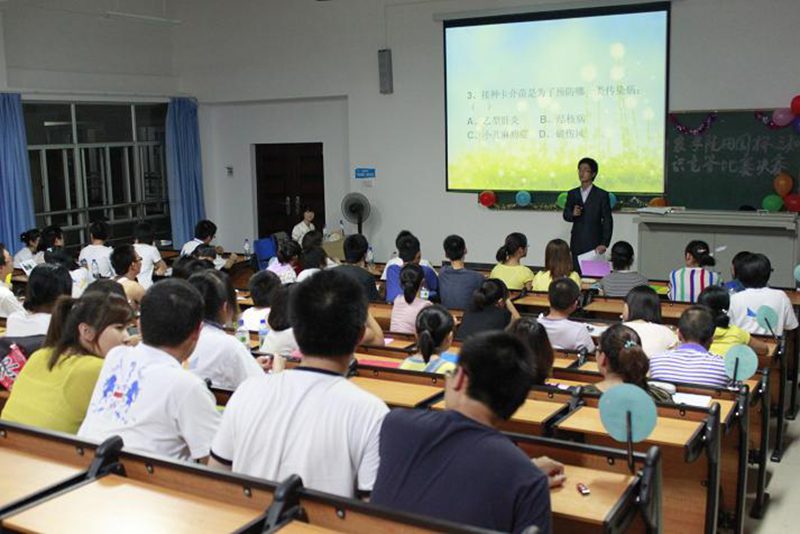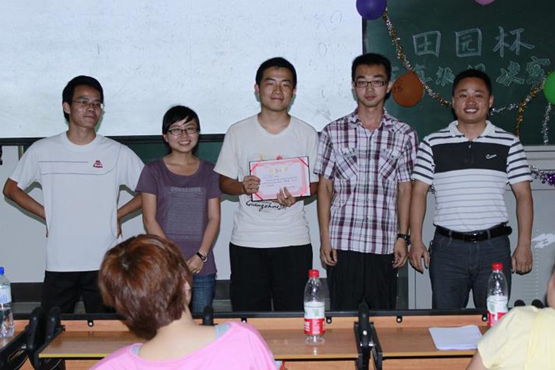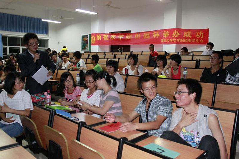 2012年4月21日、22日,农学院第四届“田园杯”生物趣味知识竞答决赛在4教209火热进行。本次参赛队伍由经过一番激烈角逐脱颖而出的12支高年级组代表队和10支低年级组代表队组成。参与本次活动的嘉宾有学工办王一凡老师、李洋老师和生物技术系夏幽泉老师等。 比赛在各队队员或风趣幽默或简单朴实的PPT展示和阵阵加油声中拉开序幕。在第一轮必答题环节中,参赛队员个个表现出高昂的斗志,经过缜密思考和讨论后,顺利作答。第一轮结束后,各队都表现相当精彩,可谓不分伯仲。第二环节的选答题中,有的队伍敢于冒险、勇于挑战,有的队伍小心谨慎、步步为营,比分在第二环节后渐渐拉开。在前两轮答题过程中穿插的幸运题更是引爆了全场,带动了观众参与活动。最后,难度最高的风险题将全场紧张激烈的气氛再次升温。只见有的队员在冥思苦想,有的便与其他成员进行激烈讨论,有的则在焦急地等待着场外援助人员给出问题的答案。刺激的比赛更将场内气氛推向了一个又一个高潮。