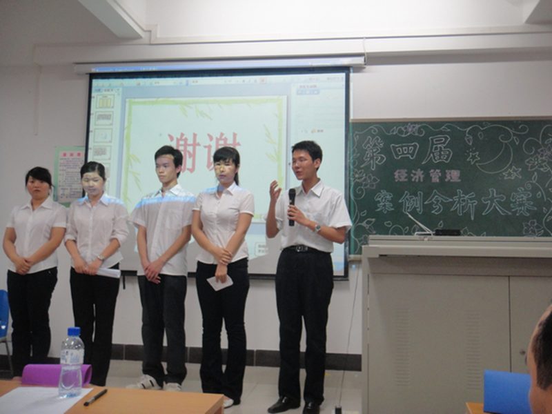 本次大赛历时一个月,经过初赛与决赛两个阶段,以“探索出真知,创新求发展”为主题,以“让思想超越课本,让案例走进课堂;用知识解决问题,用竞争培养能力”为目的。通过各参赛队伍精心准备,在初赛中六支队伍脱颖而出进入本次决赛。决赛现场中选手们饱含激情的演讲,对案例独到精妙的剖析,评委老师的精辟点评和选手们精彩的答辩感染了整个现场。赛场上时而悄无声息,时而掌声雷动,时而引来会心的微笑,选手和听众,在彼此的述说和聆听之间,一起享受着一个月来的丰富成果,同时也是对自己知识的肯定。通过理论与实践结合,从而得出更有说服力的案例结论。各个参赛队伍的案例涉及企业发展、市场产品定价策略、农民土地财政等,经过三个小时的激烈角逐,最终参赛的“六扇门”队的《居高不下的药价,你hold的住吗?》夺冠,“开心农场”队的《万嘉果热带植物园现状分析》夺得亚军,“星光之恋”队的《教材周期使用》夺得季军。整个案例决赛的现场精彩呈现。