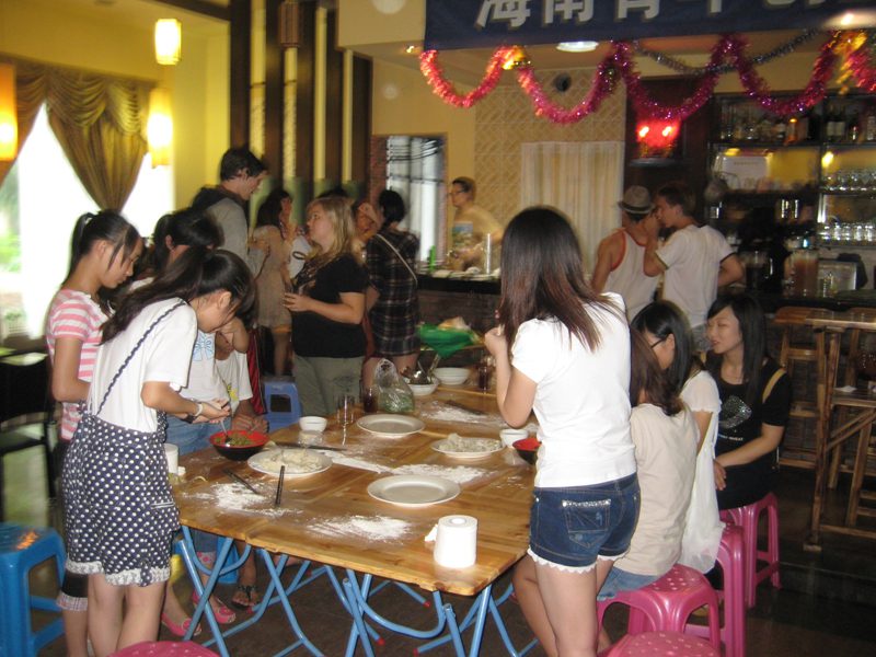 活动分为厨艺秀、现场品尝、游戏、音乐交流四个环节。留学生们同中国学生一起饺子,大家捏出许多奇形怪状的饺子,快乐无比。中国同学做了红烧茄子、拍黄瓜、酸辣土豆丝、金针菇炒肉丝等。留学生们现场做了意大利面、寿司、日本特制牛肉、俄罗斯煎饼等异国风情食物。在大家甜美的歌声和吉他的助兴下,大家现场品尝的工作也做得特别努力——美味佳肴一出锅就统统被一扫而光。