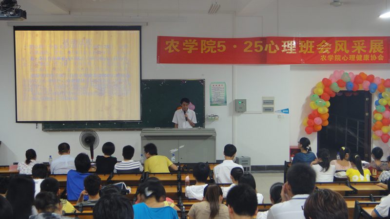 2012年5月20日晚7点30分,农学院5.25心理班会风采展于4教209举行。我院学工办辅导员周霞、王一凡、李洋、王远露老师以及心理健康协会会长张苏宁同学出席并担任评委。