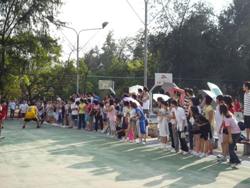 全体人员被随机分为A和B两个队,各队确定球员阵容、演练攻防阵型,都秣马厉兵、积极备战。比赛采取男男对战、男女混战和女女对战的方式进行,整场球赛共分为6节,每节8分钟。每节各队派出5人,按正常规则比赛。整个比赛在快乐、热烈的气氛中进行,每一个队员都充分展示了球技和体能优势,双方比分各有领先,精彩不断。特别是在男女混战中,若女生不先进球,则男生进球无效。因而男生积极抢篮板,带动女生打球,配合积极、默契,各个学生组织早已不分彼此,场上一派其乐融融之景。最后,A队技高一筹,以绝对优势战胜了B队。不过,场上的学生们早已不在乎比赛的结果,团体赛在一片掌声和欢笑中圆满结束。