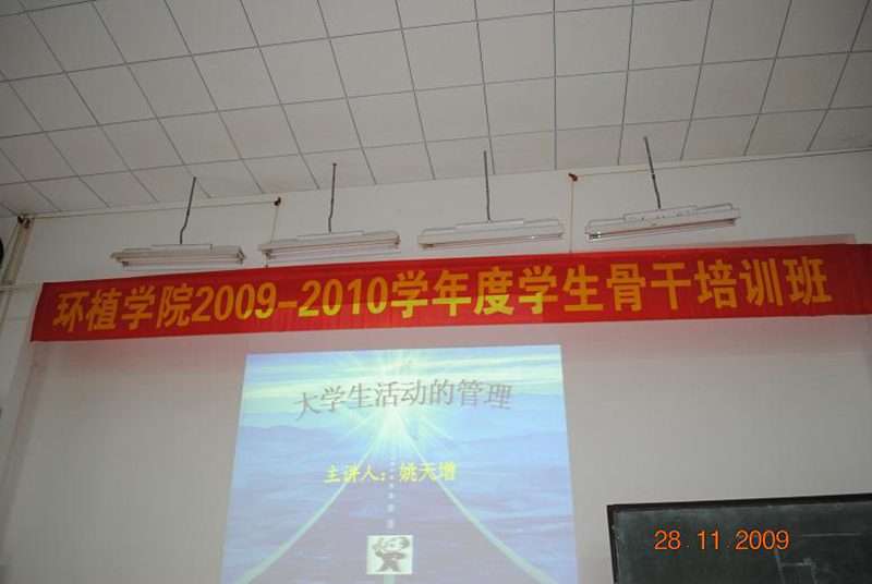 (记者:杨济徽.王中凡,摄影:韩小波)2009年11月28日,环植学院09-10学年度学生骨干培训第二轮理论课在电教室进行。