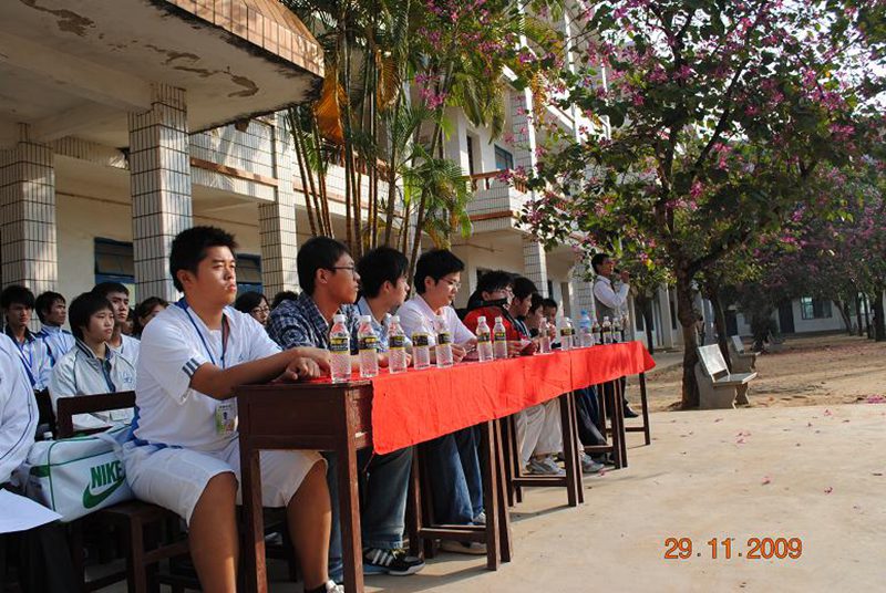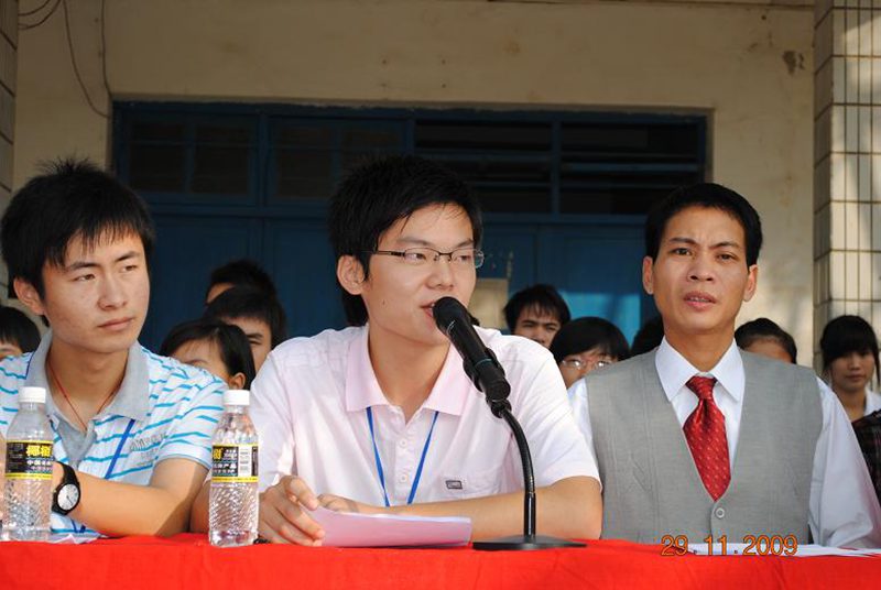 伴着雄壮的团歌,儋州市丹阳中学的团委谢书记首先进行了开场致辞。
