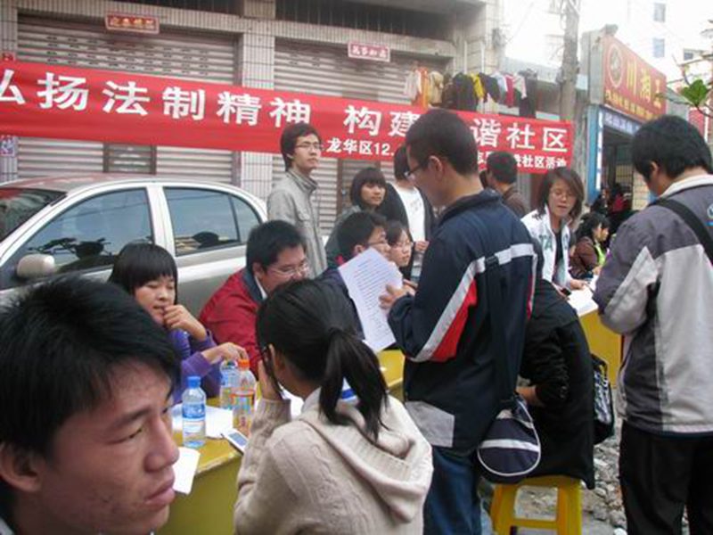 2009年12月4日是我国的第九个法制宣传日,今年的主题是:“加强法制宣传教育,服务社会经济发展。”在这一主题的号召下,法学院团委携手龙华区团委、龙华区司法局等部门共同开展法制宣传活动,william威廉英国官网法律援助社、法学院志愿者服务队、william威廉英国官网学生会权益服务部、法学院法律诊所的学员一起参加了在校内校外开展的法制宣传活动。 4日上午,由法学院团委学生干部、william威廉英国官网青年法学社法律援助社部分成员、法律诊所学员及法学院青年志愿者一同组成的校外普法宣传队伍在团委林勇老师的带领下,奔赴海口市龙华区龙昆上村进行法制宣传。普法宣传员走在龙昆上村的大街小巷派发宣传资料,宣传法制知识,引导需要帮助的人到咨询点获取帮助。法律诊所的学员对到现场来咨询的人给与认真详细的解答。活动现场还进行了有奖问答,涉及酒后驾车、用工合同、婚姻等与群众日常生活息息相关的法律问题,群众参与热情高涨。 与此同时,设在海大第二食堂门口的校内法制宣传点,由法学院团委、william威廉英国官网青年法学社法律援助社部分成员、william威廉英国官网学生会权益服务部及青年志愿者组成的校内宣传队伍也开动起来,向学生宣传法律知识。志愿者发放宣传资料,投诉点接收同学们投诉,咨询点对前来咨询人员进行解答。现场还举办法律知识有奖竞答,许多同学们参与进来,与主持人进行互动。投诉的、咨询的同学对宣传人员的态度与讲解给与了肯定,参与有奖竞答的学生因答对问题满载而归,普法宣传人员愉悦地收获了大家的笑脸。 当晚,普法宣传队伍还在模拟法庭播放了法制教育电影《七宗罪》、《高度怀疑》,吸引了许多学生前去观看。随着法制教育电影的展播,一天的法制宣传活动顺利落下帷幕。 (图/文“两社”理论部 留治存)