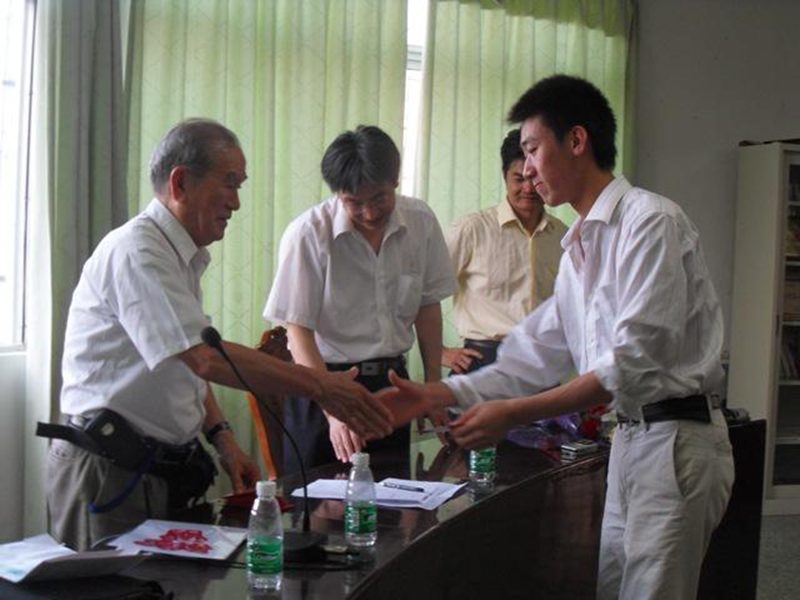 村濑明老先生站在会议桌前,用不太熟练的中文向大家问好,表达了对同学们生活、学习的关心,并鼓励同学们继续努力。虽然不太熟练,虽然仅仅几句简单的中文问候,却表达了老先生对同学们深深的关怀之情。同学们为村濑明先生和刘帅东老师献上了两束美丽的鲜花来表达自己的感激之情,尊敬之意。每给一位同学接受助学金时,村濑明老先生都要紧紧握住同学的手,传达鼓劲、加油的力量。大家也将自己的感激之情装进信封、剪成窗花、做成贺卡送给这位慈祥的老人。小小的红包装载了太多的期盼和关心!最后村濑明老先生与同学们合影留念,时光定格在那温暖的瞬间,也将整次活动推向高潮。