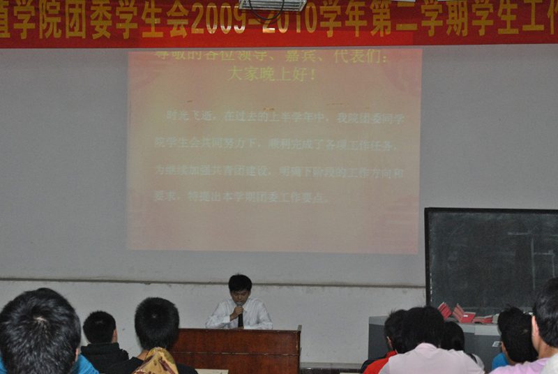 (记者:杨济徽,王中凡.摄影:李新星) 时光荏苒,过去的半学年中,我院团委同学院学生会共同努力,顺利完成了各项工作任务,为继续加强共青团建设,明确下阶段的工作方向和要求,2010年3月13日晚8点,环植学院在电教室隆重召开了环植学院团委学生会2009—2010学年第二次学生工作会议。