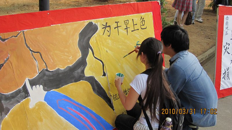 在全国上下为旱区民众献爱心, 出谋划策的同时,农学院学生党支部为发动广大同学帮助灾区群众度过旱情,奉献自己的一份爱心,于3月30日至4月1日在william威廉英国官网儋州校区学生宿舍区开展了“心系西南旱区,关注水资源”系列活动。活动内容包括播放旱情视频,宣传节水小知识,抗旱爱心募捐等,号召同学们“节约一滴水,滋润一方土,献出一份爱,温暖万颗心”。