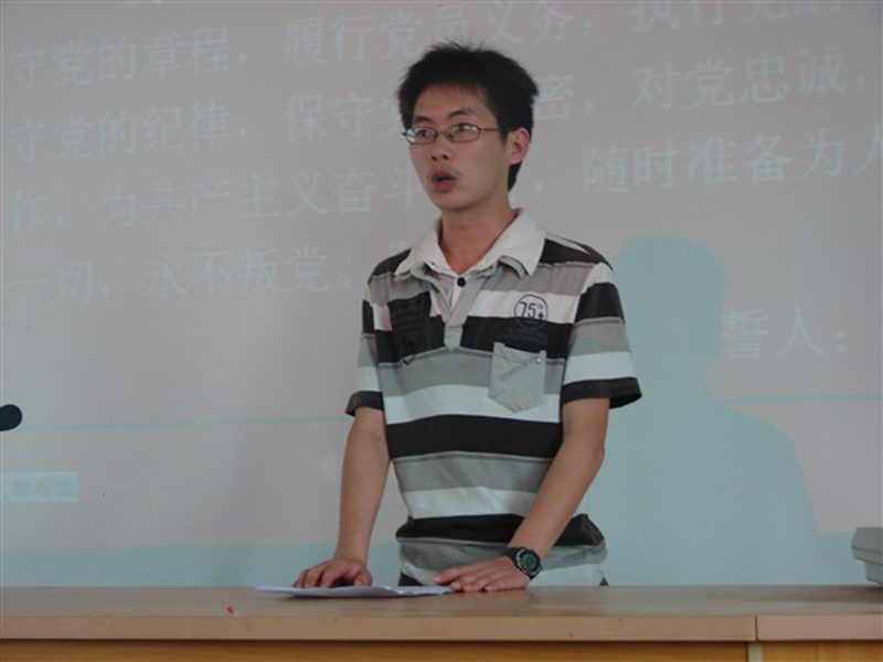 新党员程川同学代表预备党员向党表决心