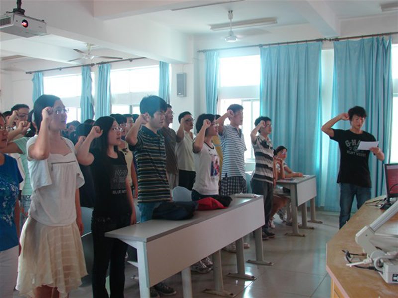 新党员们在陈林同学的带领下庄严宣誓