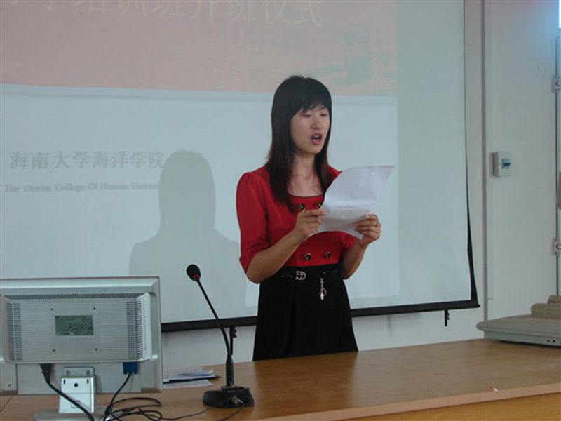 2010年4月6日下午3:00在海洋楼报告厅里响起了高昂的国际歌声,海洋学院入党宣誓仪式暨第四期入党积极分子培训班开班仪式在这里隆重举行。参加开班仪式的有学院党委陈平书记、院团委书记王林桂老师,第二学生党支部书记李丽老师,58名新党员和51名入党积极分子。仪式由院团委书记王林桂老师主持。