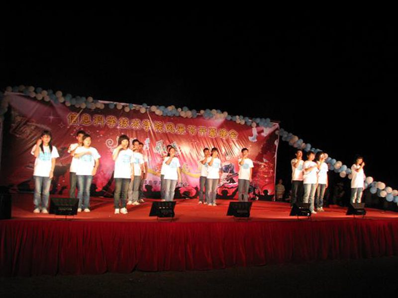 4月11日晚7:30,信息学院第四届校园风采节开幕式晚会在起点草坪精彩上演,精心搭置的舞台在五彩缤纷的灯光下光彩夺目,起点草坪上不时传来的阵阵掌声更是将整个开幕式推向了展现青春风采的高潮。学院党委陈明宝书记、蒙秋妍副书记、学工办伍庆清主任、院团委书记欧少红老师和学工办全体老师出席了开幕式。 8点晚会正式开始,在海南岛四月份给大家一种青春活力的风采。学院党委蒙秋妍副书记为本届风采节致以热烈而亲切的开幕词,她对信息学子在今年取得的优异成绩给予了高度肯定,并动员同学们积极参与到风采节系列活动中。之后,学院党委陈明宝书记为我们宣布此次风采节正式开幕! 来自学院09级各个专业班级的同学们在此次风采节中献才献艺,凭着精心准备的节目展现了自我的风采。学院艺术团女生们特殊的《帽子舞》把人们带到了一个风格迥异的世界,让人们眼前一亮。随后,精彩的节目纷至沓来,CPU组合表演了一场扣人心弦的街舞,学院歌手们也在这个舞台上一展歌喉,由09电子班表演的小品《女生宿舍,男生止步》则把台下的观众逗得捧腹大笑。随后出场的是学院齐昌盛等老师表演的相声《新武松打虎》,他们将古今的时代气息掺杂在一起,搞笑的元素更是花样百出,看完后人们久久回味,平常不苟言笑的老师们此刻在舞台上的活跃将大家的心推向了高潮……最后,由学院合唱团演唱的《国家》将这场开幕式带入尾声。 举办信息风采节,有利于发掘信息人的潜力,发挥个性特长,培养兴趣,陶冶个人情操。青春的舞步不止,信息人的梦想不停。院风采节是一代信息人展现自我的舞台,是信息人全面发展的平台,是信息人永葆青春的体现。此次风采节的活动丰富多彩,精彩无限,让我们相约在琼州的人间四月,相约在海大的青春舞台,一起展现我们的风采。