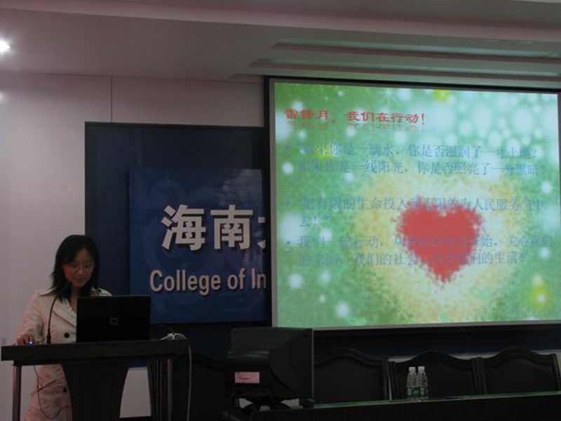 在3月雷锋月主题活动中,各团支部积极响应学院“学雷锋,行在海大,共建海岛”的号召,把雷锋精神贯彻到日常生活中来。各团支部纷纷开展了志愿服务活动,活动内容形式多样,活动地点由校内到校外。4月17号下午,学院雷锋月主题活动总结表彰大会如期举行。 各团支部带着自己的活动成果通过幻灯片、视频、音频、动画等形式进行展示。09电子团支部“继承传统美德,弘扬雷锋精神”主题活动在海南省特殊教育学院开展。团支书声情并茂的演讲引起了大家对特殊人群的关注,被那些虽身有残疾仍然快乐面对生活的小朋友所感动。09计本4班团支部制作的活动视频中欢快的伴奏,一张张年轻的笑脸,让我们切身地感受到了同学们在万绿园做志愿服务工作的青春,热情和活泼。“绿箱子行动”是08信科团支部举行的回收手机废旧电池的环保活动。这活动使我们意识到当代雷锋精神不仅仅只是乐于助人,无私奉献,雷锋精神也在与时俱进,增加了许多新的环保理念。09通信4班团支部把雷锋精神宣传到了海大幼儿园、海大华兴学校中。为使内容通俗易懂,同学们亲自用彩笔制作了海报。 通过大家评分,09电子团支部获得本次学雷锋主题活动的第一名,09通信4班团支部和09信安2班团支部获得第二名,09计本1班团支部和09实验班获得第三名。08信科团支部获得最佳创新奖、09信科团支部获得最佳组织奖。 最后,团委书记欧少红老师、副书记章崎峰学长分别对各团支部活动的组织开展做了点评。他们强调,生命虽然有限,而生命的价值却可以在奉献中得到无限延伸。无论活动的大小,只要同学们把雷锋精神内化于心,付诸行动,再小的一滴水珠,也能闪烁太阳的光辉。