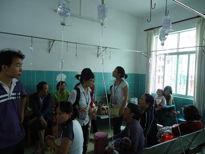 5月16日上午9时,支部24名同志准时到达医院。这正是医院最繁忙的时候。门诊大厅挤满了前来挂号看病的人。同志们在医院负责人刘主任和护士长的指导下被分配在门诊部和住院部,分成两个小组后,同志们迅速投入到紧张的工作中。有的同志负责在就诊室门口维持秩序,收集病人挂号单,安排病人按顺序就诊,保证医生接诊环境的安静,使得现场秩序有条不紊;有的同志在输液室帮助护士查看病人的输液情况,及时叫护士换液、拔针;有的同志来到病房与患者聊天,给予患者安慰和鼓励;还有一部分同志不畏辛劳,穿梭于楼上楼下、门诊部和住院部之间,为病人、家属提供力所能及的帮助。