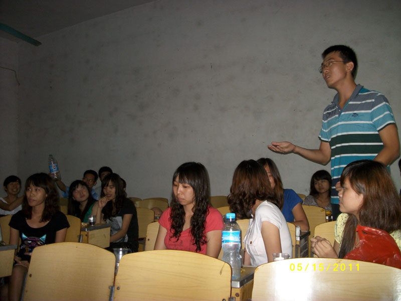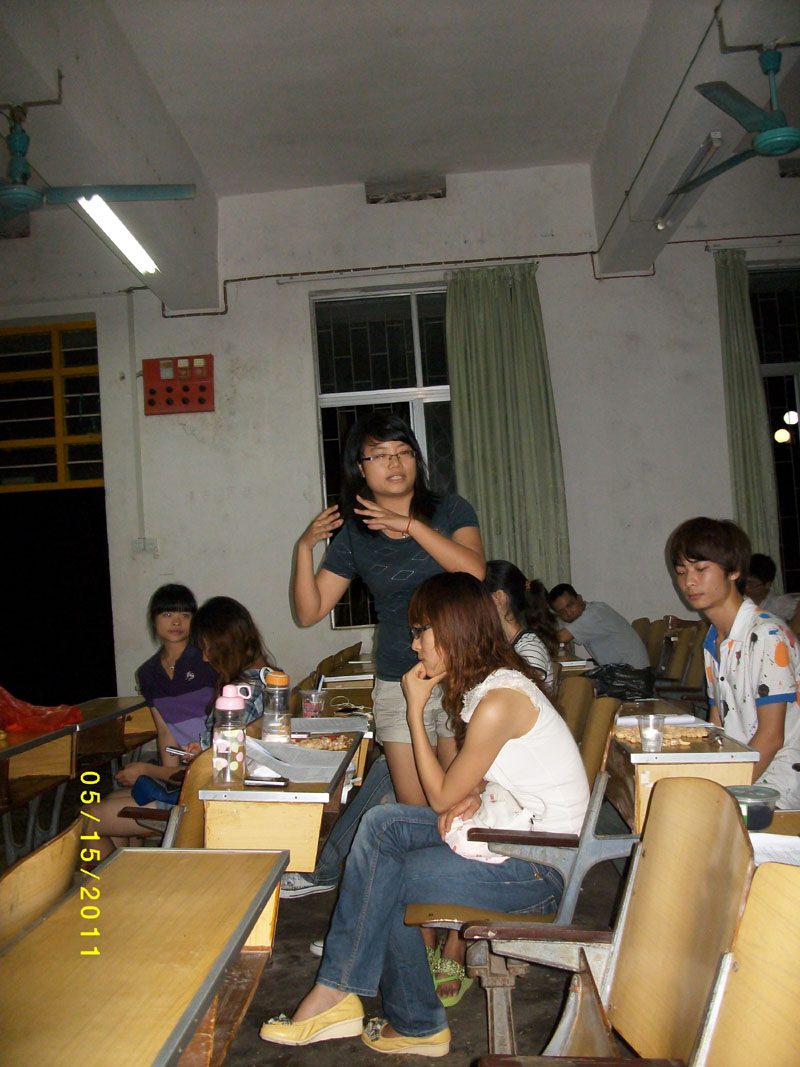 2011年5月15日晚上8时,2008级园林2班于1101课室开展“珍爱爱生命,修养心灵”主题班会,班会主要有三大部分:辩论赛、趣味心理测试问答及心理测试游戏。我班全体同学参加本次班会,此外,还特别邀请了我班的两位党员联系人——张燕和侯化芬参与我们班精心制作的主题班会。