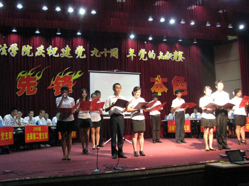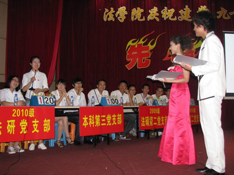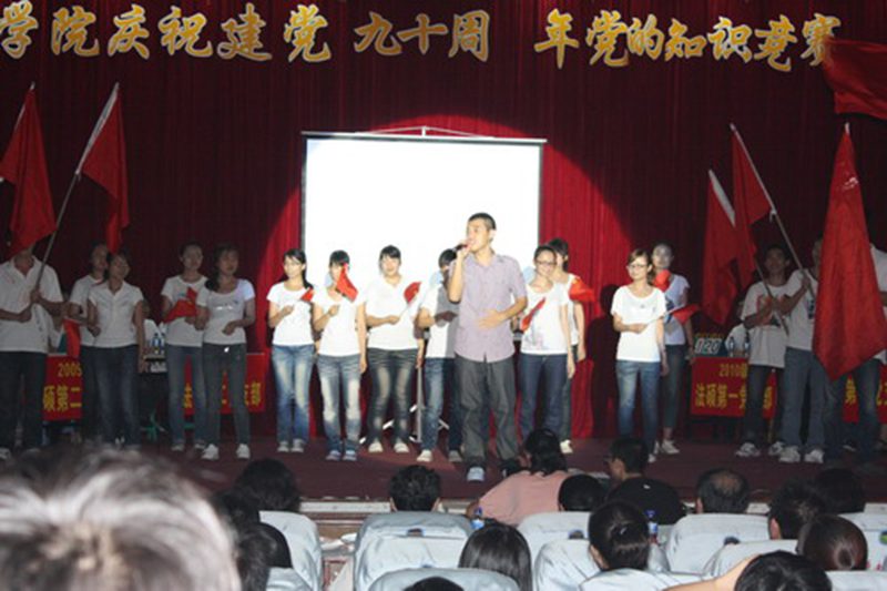 在中国共产党建党九十周年即将来临之际,6月8日晚,法学院在学校行政报告厅二楼隆重举办“先锋•本色”庆祝建党九十周年党的知识竞赛。各学生党支部以此为契机展示了各自在创先争优活动中的学习实践成果,向党献礼。竞赛活动邀请校党委组织部王强副部长、校团委王丽娜书记、艺术学院党委陈泰义副书记、政行学院王芳老师、法学院张静焕老师担任点评嘉宾。法学院党委韩力光副书记、王琦副院长,部分党员教师和400多名党员及入党积极分子聚集一堂共祝伟大的党90诞辰。 一首青春迸放、慷慨激昂的诗歌朗诵《没有共产党,就没有新中国》之后,知识竞赛拉开了帷幕。法学院学生本科第一、二、三党支部,09级法研党支部,09级法硕第二党支部,10级法研党支部以及10级法硕第一、二党支部等八支队伍各推选出三名党员代表参加竞赛。竞赛分必答题、音像题、风险题和才艺展示四个环节,其中才艺展示穿插在前三个环节中。第一个环节为必答题,每支队伍的队员任选一题作答,答对加10分,答错不扣分。在此环节中,选手们充分表现出了新一代党员的自信,凭借着对党的知识的充分了解,对主持人的问题几乎每答必对。观众们也在选手们回答问题的过程中了解了党的发展历史与先进理论,重温了那些红色经典。第一环节告一段落后,本科第三党支部、09级法研党支部、本科第二党支部分别为观众们献上歌舞《映山红》、诗朗诵《青春中国》、歌曲《中国人》。唯美的《映山红》,深情的《青春中国》,激扬的《中国人》,每位表演者都用自己的方式诠释着心中对党的敬意,展示着作为新一代青年党员的新风貌。本科第二党支部选送的《中国人》拿到了表演环节的第一个满分。这时,场上精彩的问答和激情的演绎及台下师生们的互动,伴随着此起彼伏的掌声,活动掀起了第一个高潮。 第二环节为音像题,各队伍各选一道题,在所给的音乐或影片中回答其反映的党在不同的发展时期的重要事件。在此环节中,各队伍都显示出了扎实的基础知识,并在团队的合作下给出了堪称完美的答案。紧张又精彩的知识答问后,又是表演时间了。本科第一党支部代表以一首清新自然的《珊瑚颂》得到了评委的一致好评,获得满分。10级法硕第一党支部悠长激扬的琵琶弹奏《红色曲目集锦》以及09级法硕第二党支部纯真的女声独唱《绒花》亦得到不错的成绩。精彩纷呈的节目和党员激情的表演,感染评委加入到活动中,王芳老师特为现场献歌,再次激起阵阵掌声和喝彩声! 第三环节是风险题,根据难度设定分数10分、20分和30分不等,各队从中选择作答,答对加相应分数,答错则扣相应分数,此环节由大众评委举红牌或蓝牌打分,以举红牌过半决定得分。比赛至此,场上比分你追我赶,竞赛进入白热化阶段。但选手们依然淡定自如,根据自身情况选择10-30分值不等的题,从容作答。大众评委对选手的回答相当满意,频频给出了“满江红”的红牌。到了决胜负的关键时刻,10级法硕第二党支部的代表们以一段国粹京剧、一段激情澎湃的诗歌朗诵《党的礼赞》与一首激荡人心的《没有共产党就没有新中国》带动了全场气氛,将今天的竞赛又一次推向了高潮,毫无悬念地获得了满分。10级法研党支部代表也不甘示弱,以《万泉河水》、《红星闪闪》等红歌大合唱感动了在场的每个人,让在场每一人仿佛回到了那激情燃烧的革命年代,师生们自发起立加入到《歌唱祖国》合唱之中,报告厅里顿时激起了澎湃的歌的海洋。 经过四轮角逐之后,10法研党支部、本科第二党支部荣获一等奖,09法研党支部、10法硕第二党支部、本科第一党支部荣获二等奖,10法硕第一党支部、本科第三党支部、09法硕第二党支部荣获三等奖。通过本次党的知识竞赛,那些党艰辛而辉煌的历史又触动了我们深层的记忆与情感,那些以不同方式演绎的红色的经典更点燃了我们内心的激情与感动。作为成长在党的春风里的新一代青年党员,作为沐浴在党的阳光下的新一代大学生,要牢记历史,珍惜现在,奋斗未来,时刻跟党走,以新的面孔、新的精神去创造与演绎新的风采。 (文/图:法学院团学宣传部 记者团 陈云霞 孙薇)