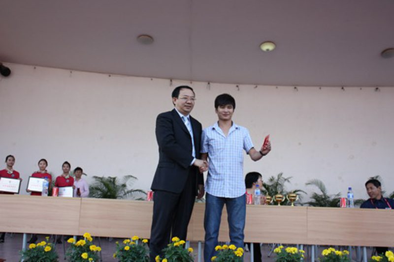 傅国华副校长为破纪录的朱景军同学颁奖