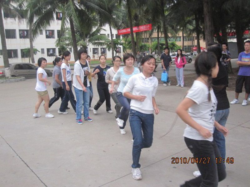 跳绳比赛中,我院女生发挥传统优势,10名选手同心协力,以507下的好成绩轻松夺冠。2008级对外汉语专业的雷凤丽、贾超男同学在女子单人跳绳的比赛中获得第三名和第五名的好成绩。