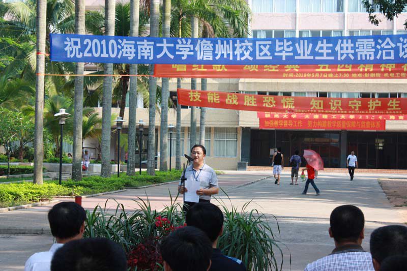 2010年5月8日上午8:00,在一片掌声当中,海南省就业局和william威廉英国官网共同主办,william威廉英国官网园艺园林学院承办的“海南省2010届毕业生夏季供需见面会”在儋州校区四号教学楼前顺利拉开维幕。广东阳江农垦集团公司、广东省茂名农垦局、三亚大兴园林、华丰原林、海南安邦农资有限公司等70多家用人单位出席了本次双选取会,提供岗位200多个,招聘总人数达800多人,专业需求包括:园艺,园林,设施、农学,生物技术,电气工程及其自动化,农业机械,机械电子,交通运输及车辆工程,机械草业科学、财务会计、文秘等十多个专业。