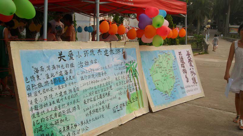 为提升当代大学生环保意识,引起大家重视并自主保护我们共有的家园,5月6日至7日,我院爱心基金会与绿苑环境保护协会举办了一次主题为“关爱小环境,共建旅游岛”的公益活动,号召全校师生用实际行动加入到国际旅游岛的建设中来。 6日上午,活动在东门至一食堂前进行了环境问卷调查并举办了“关注环境,爱护家园”主题图片展。下午组织志愿者在宿舍区东湖进行了垃圾清理活动。当天晚上,我院爱心基金会在A5宿舍前草坪进行了环境影片展播,吸引大量同学前来观看。为了吸引更多的同学能够参加到这个活动中,基金会特地于7日在一食堂前空地开展“关爱环境”主题游园趣味活动。活动中通过看图识标志和回答有关环保小知识这样的互动节目,帮助同学们更加深入的了解当前环境问题。