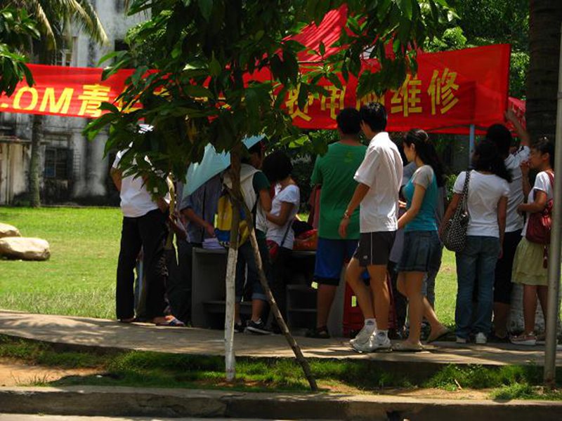 为了推动学院学风建设工作,帮助同学展示自我、锻炼自我,5月初,.COM突击队全体队员顶着烈日来到了学校教工小区,为广大师生提供现场咨询和电脑维修服务。 5月的海南天气炎热,队员们无丝毫怨言,按时把相关器材从学生区搬放到教工区服务地点,保证了活动的顺利进行。突击队24名成员分成七组,分别负责现场宣传、宣传资料发放、电脑维修、电脑装机咨询、杀毒服务等。虽然现场前来咨询和维修电脑的的人不多,但是队员们仍然坚守岗位,有的主动出击,深入教师住宿区发放宣传资料,比较出色地完成了各自的任务。本次教工区现场服务共出勤3次,成功维修电脑3台。在活动结束后的一周内,队员们出勤数量也明显增加,较好地向老师们提供了我们的专业服务。为了更好更专业地为师生服务,.COM突击队会在往后的日子里加强培训、加强专业学习。