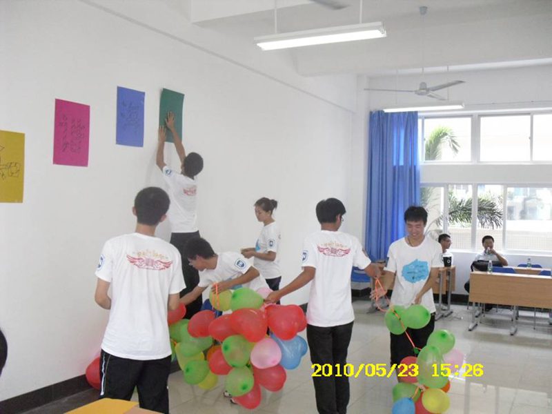 在5.25大学生心理健康日来临之际,2009通信2班策划举行一次心理健康主题班会,希望通过各种方法解决同学们心理存在的问题,丰富同学们的课余生活,加强同学们的沟通与交流,提高班级凝聚力。 5月23日下午,班委将全班同学以1间男生宿舍加1间女生宿舍为单位分组,在班会上表演节目和进行游戏,以此促进男女同学的交流,拉近宿舍之间的关系。大家玩得不亦悦乎,在游戏中领悟到了许多心理健康知识。 看看我们的活动照片吧。