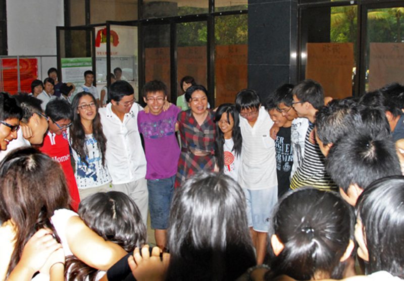 与此同时,陈奇霞主任带领着数十名参加团体咨询的同学愉快地做起了一系列生动活泼的心理游戏,如盖章契约、海内存知己、天涯若比邻、无家可归等。