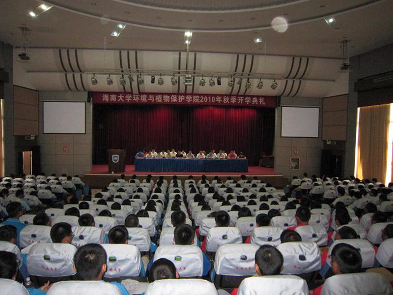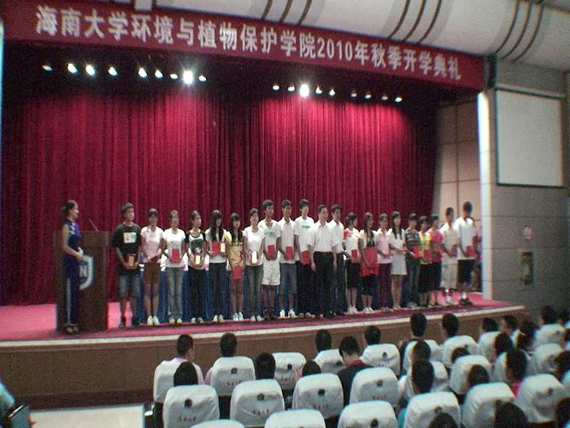 (记者:孟宪雯)9月30日下午2点30分,环植学院在海甸校区原办公大楼二楼报告厅隆重举行2010年秋季开学典礼暨专业教育活动。校党委陈封椿副书记,学生工作处邓秀成副处长,环植学院郑服丛院长、学院党委沈秀清书记、学院朱朝华副院长、学院党委崔昌华副书记,海南南国绿洲公司王朝国总经理、海南正业中农高科公司王战鄂总经理、海南博士威公司杨照东总经理、乐东茂隆公司陈树远总经理和陈丽璇、庄卿贤副总经理等企业代表,以及学院部分教师、老生代表和300多名新生参加了开学典礼。