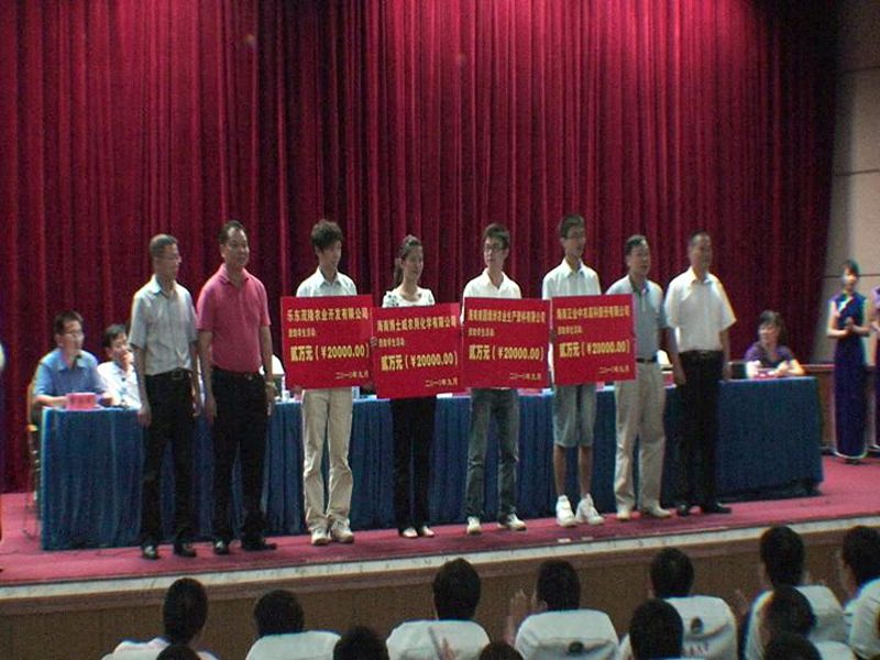 会议还举行了奖学金表彰、颁发聘书和企业捐赠仪式。海南正业中农高科公司的领导向28名获奖者颁发了“2009-2010学年度正业助困奖学金”;学院领导现场为4位公司老总颁发了环植学院名誉系主任聘书、为9名企业代表颁发了环植学院名誉班主任聘书;海南南国绿洲公司总经理王朝国先生、海南正业中农高科公司总经理王战鄂先生、海南博士威公司总经理杨照东先生、乐东茂隆公司总经理陈树远先生分别向环植学院捐赠了2万元的学生活动经费。