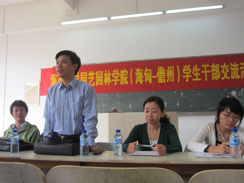 刚下车,儋州校区的同学们就受到了我院海甸校区团学干部代表的热情迎接,并带领儋州校区的同学们游览了校园。接着,举行了“海甸——儋州学生干部座谈交流会”,会上,王珍书记、团委彭发万和李丹老师分别作了热情扬益的发言,阐述了此次活动的目的是希望能促进交流,加深两校区之间的感情,老师们亲切的笑容和话语很快就消除了大家彼此间的陌生感,活动在融洽的气氛中进行着。两校区的干部代表也分别介绍了各自团学机构的工作近况。然后,我们进行了自由交流谈论,。