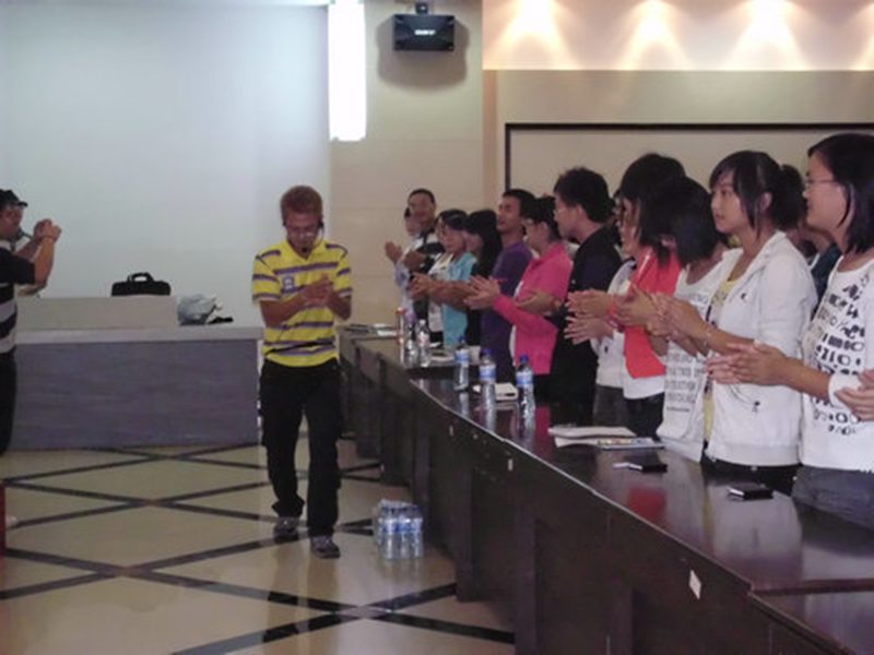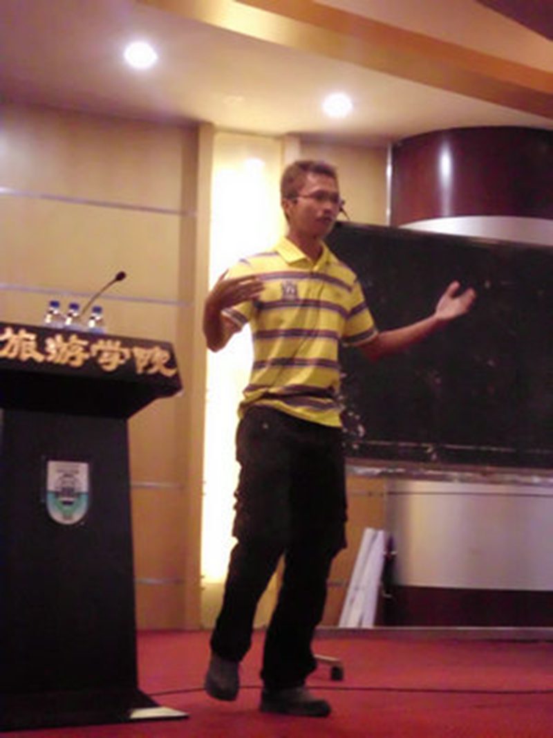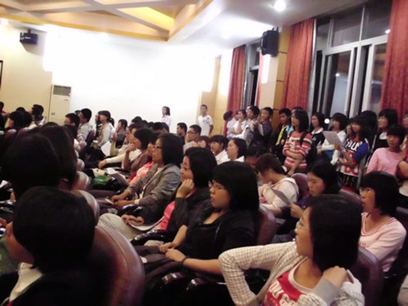 2010年10月29日,旅游学院市场营销系学生会在学院的大力支持下,在旅游学院多功能厅举办了英语口语、听力能力提升交流会。本次交流会邀请到我校07届人力资源管理专业优秀学生、疯狂家族总负责人、天才英语游学活动创始人之一的刘胡兵到场给大家传授英语学习的经验。市场营销系辅导员林春梅老师也亲临现场。 经我院、系学生会大力宣传,活动超出了预期的效果。整个多功能厅座无虚席,就连会场的窗外也站满了学生听众,气氛异常高涨。 交流会在激情洋溢的音乐中拉开了序幕,刘胡兵清晰标准的口语,幽默的自我介绍,使得整个会场气氛沸腾起来。接着,刘胡兵讲述了自己学习英语的各种有趣经历,和在场听众产生共鸣。随后转入交流会主题,他撇开传统观念,向大家介绍学习英语的真正捷径: