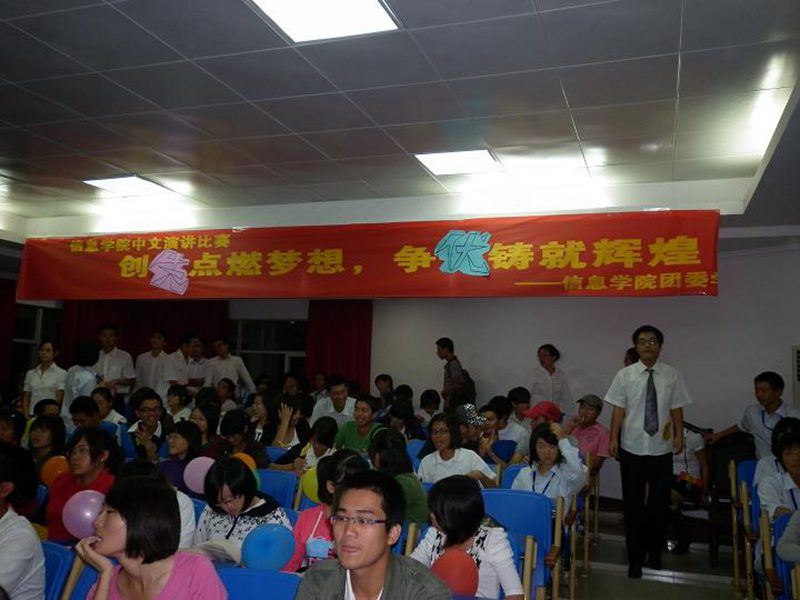 2010年11月11日晚7:00,夜幕已徐徐拉起,天气有些阴冷,校园有一处却灯火辉煌、热情满溢,那就是信息科学技术学院报告厅,在这里学院“创先争优,立志海大”中文演讲比赛决赛隆重举行。本次大赛由院学生会学习部主办,特别邀请了信息科学技术学院党委蒙秋妍副书记、政治与管理学院汪浩副教授、人文传播学院孙海兰老师、学工办齐昌盛老师担任评委。学生工作办公室全体老师和部分兄弟学院学生会主席、学习部部长莅临现场一起欣赏信息学子的风采。会场布置优雅,座无虚席,气氛温馨。 决赛开始前,学工办陈鹏老师代表嘉宾致辞,预祝本次大赛获得圆满成功。本届演讲赛以“创先争优,立志海大”为主题,经过初赛的选拔,共有10名选手脱颖而出,在决赛的舞台上角逐桂冠。比赛正式开始,十名选手“双双入场”登台亮相,喊出各自的参赛宣言,一开场便掀起了观众的热情。本次决赛共分“主题演讲”和“即兴演讲”两个环节。第一个环节十位选手依次登场,选手们紧紧围绕主题,展开鞭辟入里的分析。第二个环节中,选手们抽取即兴演讲主题,在2分钟准备时间后立即开始限时三分钟的即兴演讲。选手们表达流利、表述流畅,其中来自2009通信(1)班的于颉感情热烈,声音铿锵有力,恢弘的气势感染着现场每一位观众,获得各评委老师的一致好评,最终夺得冠军!2010信息安全(1)班的杨柳也凭借自己独特气质获得二等奖,并收获“最佳人气奖”。2010信息安全(2)班的演讲新秀李肯从初赛的激昂到决赛的稳健,以快速的破题和灵活的语言赢得阵阵掌声,与杨柳并列荣获二等奖。比赛过程中穿插的观众互动活动“歌曲接龙”和“我爱记歌名”精彩有趣,活跃了赛场的气氛,场上掌声欢笑声不断。 赛后,汪浩副教授对全场比赛作了细致点评。他用了“惊喜”和“意外”高度肯定了选手们的精彩表现,为理工科学生展现出的文采与感召力而赞叹,但是,演讲中选手们情绪渲染过多而缺少对主题更深层次的思考。他希望同学们树立自信,夯实知识根基,在演讲的土壤中探索方法、讲求技巧。之后,蒙秋妍副书记、陈鹏老师、齐昌盛老师为获奖选手颁发证书及相关的奖励。至此,本次中文演讲比赛圆满落幕!记者站:孙正、谢志煌
