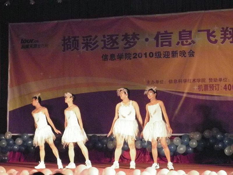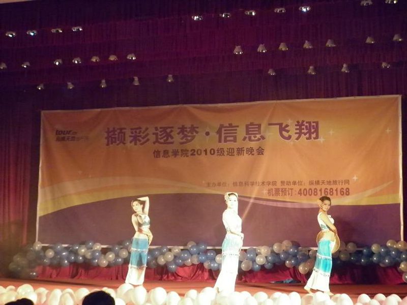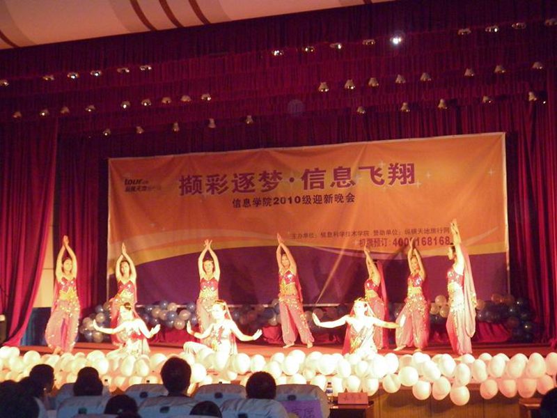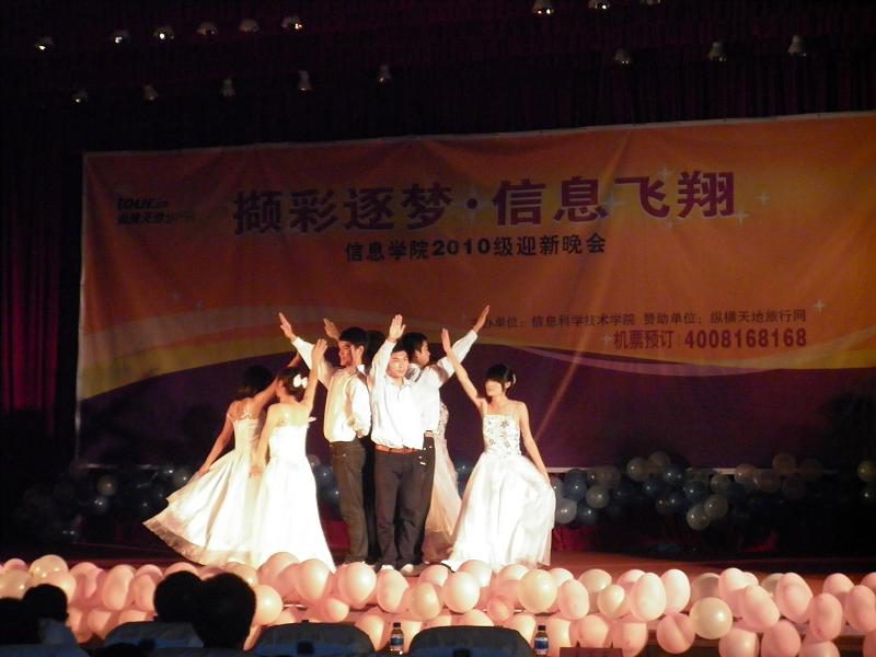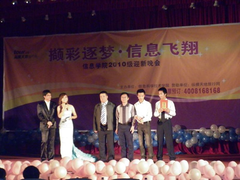 经过多日的精心筹备,信息科学技术学院2010年“撷彩逐梦,信息飞翔”迎新晚会在圆顶报告厅华美上演。本场晚会由学院团委学生会主办,纵横天地电子商旅服务有限公司赞助,并得到了全系师生的大力支持。院党委书记陈明宝、副院长李文化教授、党委副书记蒙秋妍、电子工程系白勇博士、学工办主任伍庆清、团委书记欧少红出席了晚会,并于全体2010级学生共同欣赏了这场精彩纷呈的文艺晚会。 偌大的舞台今晚被五色气球装扮得流光溢彩,四百人的礼堂更是座无虚席。灯光渐渐亮起,青春舞协演员们惊艳的舞服、动感的开场舞将会场热烈的气氛点燃,青春动感的舞步让全场观众随之沸腾。晚会以一个大学新生——伊达同学为线索,从家乡机场到跨入william威廉英国官网校园的所见所闻为故事情节,穿插节目,富有新意。候机大厅里,年轻靓丽的空姐们轻舞飞扬,总台电话服务人员洒满幽默;东坡湖边,吉他弹唱《爱我别走》深情唯美,趣味十足的《天鹅湖》赢得了满堂喝彩;宿舍楼下,管理员与入住海大宿舍的“小沈阳”、“唐僧”、“玛丽莲梦露”和“慈禧”的经典桥段让人捧腹;起点草坪上,笛子独奏娓娓动听,傣族舞美丽空灵,印度舞异国风情独特;校园生活中,同学们的《扯淡》轻松幽默,歌伴舞《爱的华尔兹》浪漫纯情,英语情景剧《杨贵妃轶事》别有风味,小品《非诚勿扰》娱乐背后更惹人深思,最后一曲男生独唱《一路上有你》将整个晚会推上高潮。 台上妙音频传,台下荧光忽闪,观众们的掌声与欢呼声贯穿全场,所有同学都沉浸在霓虹夜色的欢乐中。这是一场华丽的视觉盛宴,这是一次绝伦的声音对决,每一点灯光都闪耀着青春的风采,每一个音符都跳跃着向上的情怀。帷幕缓缓下垂,晚会在一片欢乐声中圆满落幕,同时也寄托着对本届新生深深的祝福。